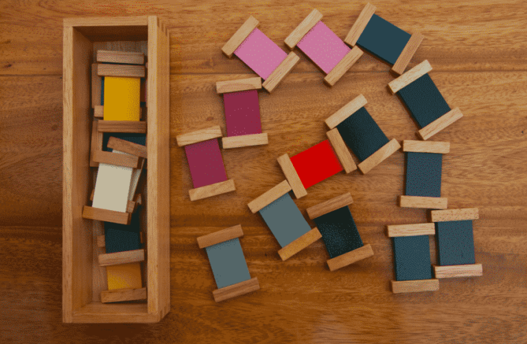 Colour Boxes are one of the most visually appealing Montessori materials. Created to be introduced to children in three stages, Colour Boxes 1, 2 and 3 contain a different amount of matching coloured tablets, which are rectangular with handles on the side.