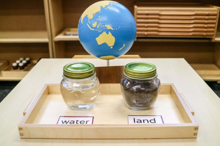 The Sandpaper Globe, also known as the land and water globe, is an introductory geography material from the Sensorial Curriculum.