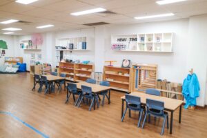 The open-plan centre features three Montessori classrooms for infants (0–2 years), toddlers (2–3 years), and preschoolers (3–6 years). Each room has hands-on materials tailored to your child’s age and interests to support their development.