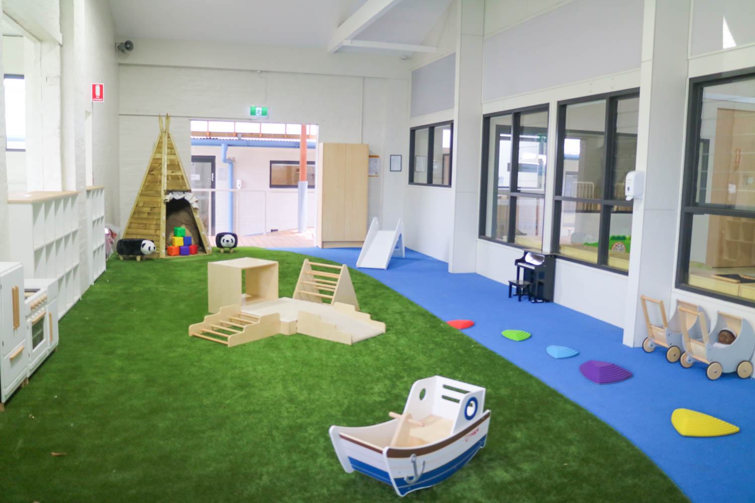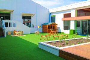 Beyond the classroom, our Belmore childcare centre features three tremendously large outdoor play spaces. The 0-2 outdoor space features gardens, a sandpit, climbing equipment, soft spaces, water play, a tee pee, and plenty of room to crawl, walk, and run. In the 2-6 outdoor spaces, children have access to a climbing frame, fort, slide, bikes, dramatic play corner, sandpit, gardens, cubby house, water play, an art station plus so much more.