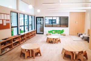 Featuring an open-plan design, our Belmore childcare centre offers five spacious Montessori classrooms for infants aged 0-2, toddlers aged 2-3, and preschoolers aged 3-6 years. Each classroom is filled with unique educational materials that connect with children’s interests and needs at each stage of development to provide them with the optimal environment for learning.