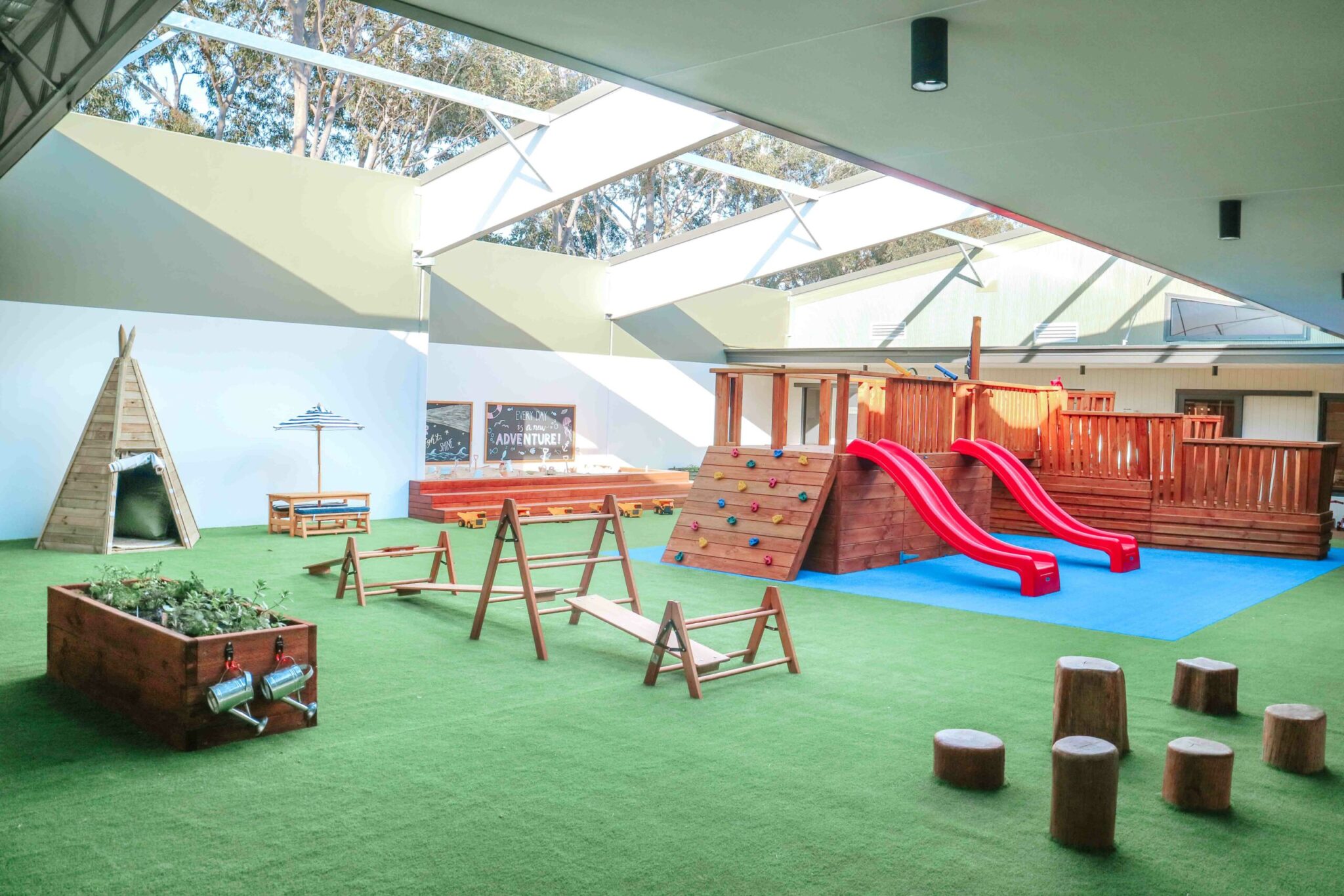 At Green Hills Montessori Academy, children enjoy three outdoor play spaces designed to spark imagination and support physical development. The 0–2 years area includes gardens, a sandpit, soft spaces, climbing equipment, a slide, water play, and room to crawl, walk, and explore safely. For children aged 2–6, the outdoor spaces offer a fort, bike track, dramatic play corner, soccer field, sandpits, water play, and more—encouraging active play and social learning.