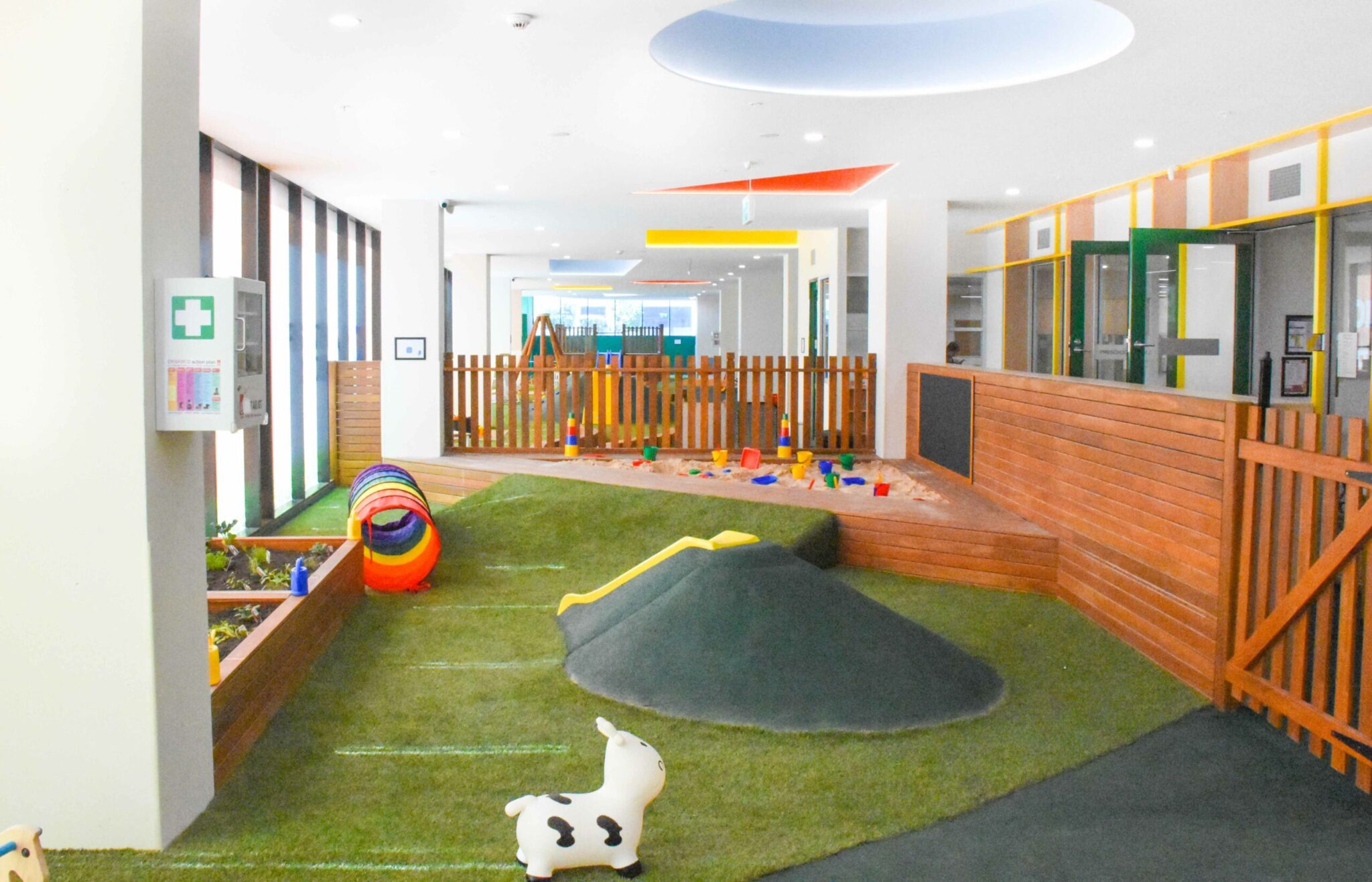 Outdoors, the centre offers two generous play areas with carefully selected structures and resources that encourage exploration, movement, and discovery.