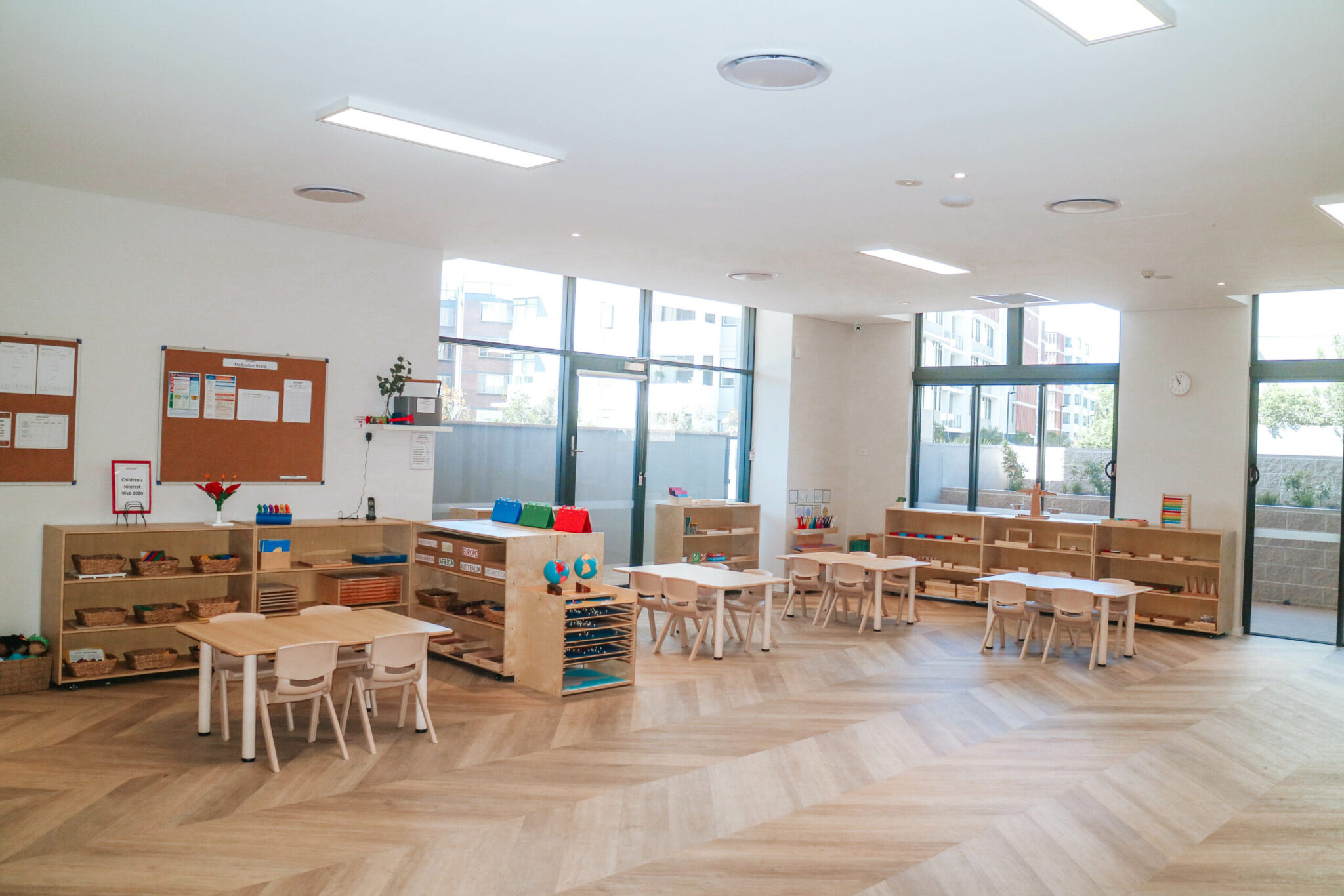 Featuring a contemporary single-story design, the centre offers three spacious Montessori classrooms for children aged six weeks to six years. Each classroom is filled with unique educational materials that connect with children’s interests and needs at every stage of development to create the optimal environment for learning.