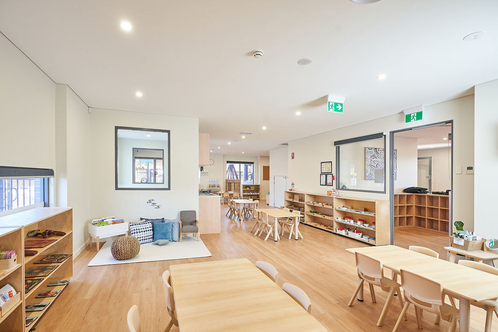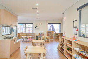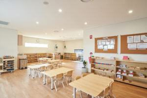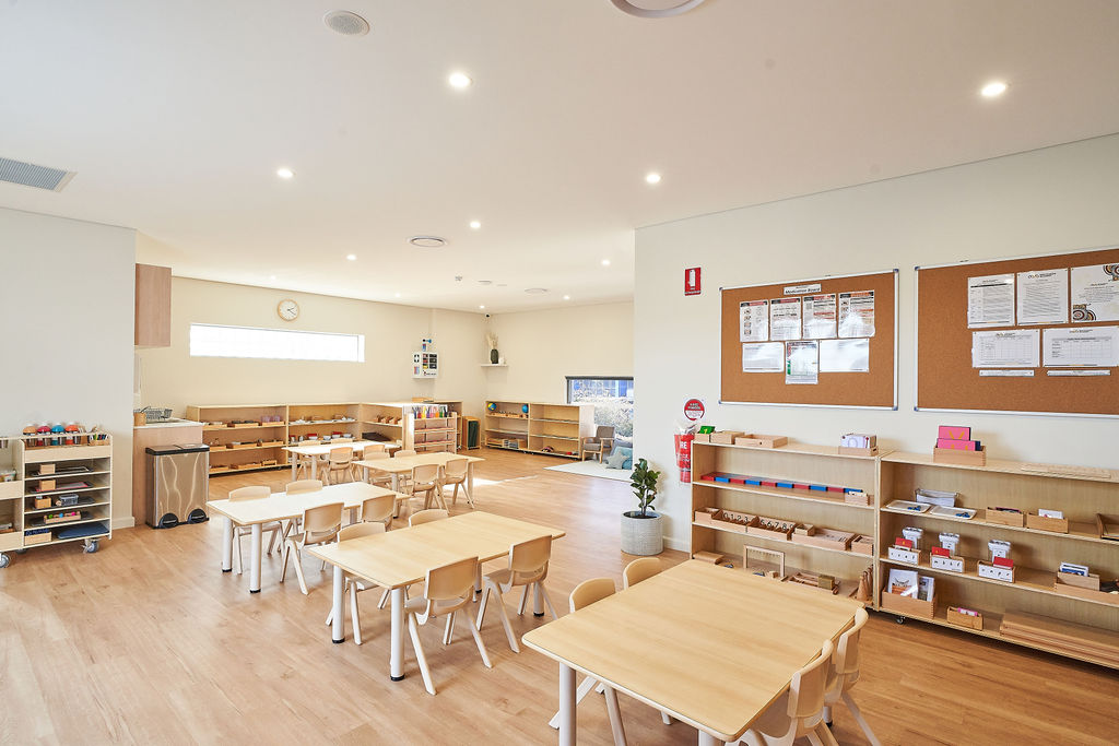 The long daycare centre features three spacious classrooms, each filled with authentic Montessori materials that encourage hands-on, purposeful exploration. Outside, children enjoy sandpits, gardens, and climbing equipment across three play areas, designed to foster physical skills, creativity, and a connection with nature.