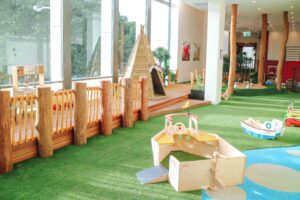 Inside, three spacious Montessori classrooms cater to infants, toddlers, and preschoolers, each filled with authentic Montessori materials suited to their developmental needs. Outside, two large play areas offer a variety of activities like climbing, sandpits, and gardens to encourage exploration and physical development.