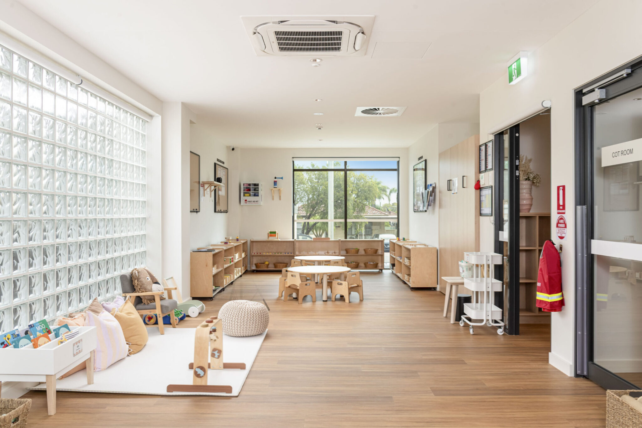This South West Sydney childcare features a modern design and carefully chosen educational materials that meet the developmental needs of infants, toddlers, and preschoolers. Every element is focused on providing a safe, supportive environment where children can learn and grow with confidence.