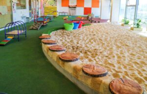 Outside, two thoughtfully designed play areas inspire learning through exploration. The 0-2 play space includes gardens, a sandpit, soft fall climbing mounds, a mud kitchen, slides, water play, and plenty of room for crawling, walking, and running. The 2-6 outdoor area offers climbing equipment, a dramatic play corner with dress-ups, sandpits, gardens, and water play, encouraging active, imaginative play.
