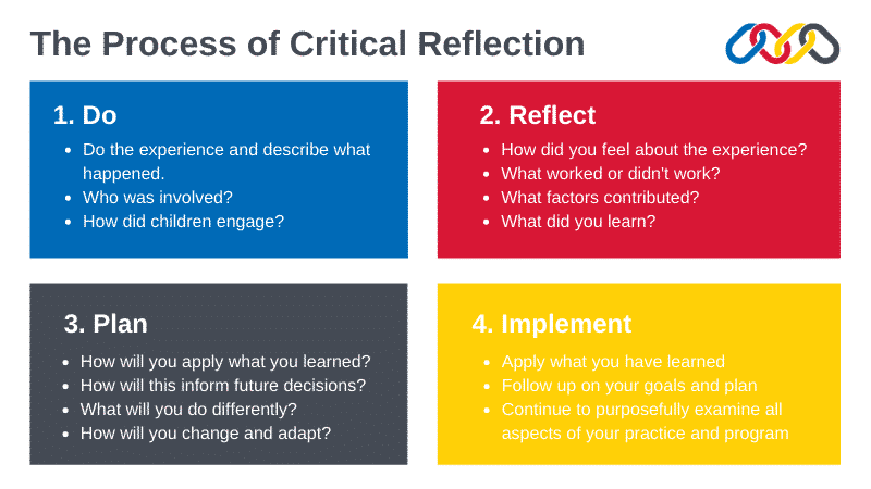 Critical reflection is important because it directly influences the quality of education and care provided to children. Through reflective practice, educators can: