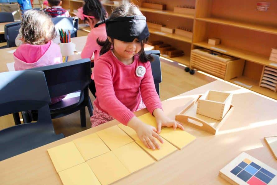 The Touch Tablets are mainly used to refine a child’s tactile sense, allowing them to discern between rough and smooth. The blindfold helps the child to focus their attention on one sense, which guides them to completing the activity.