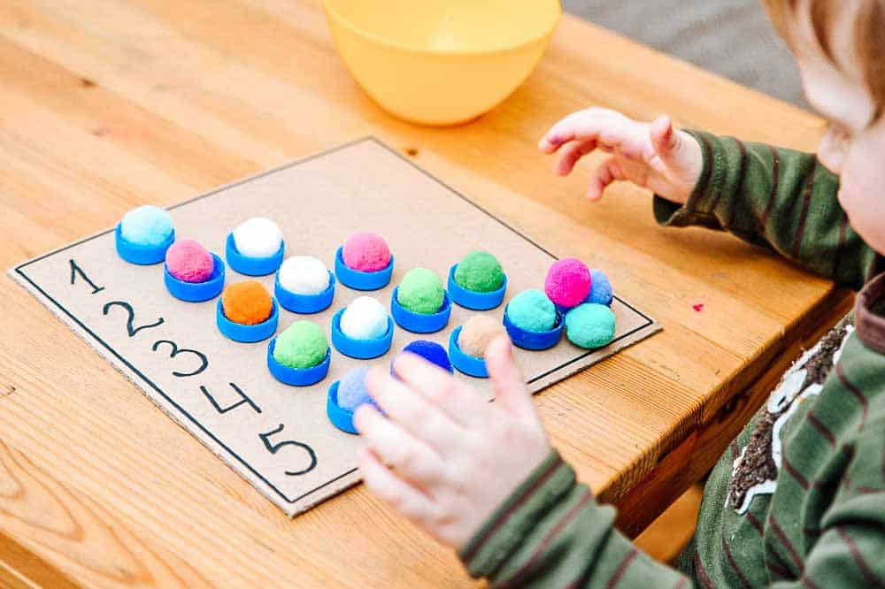Create your own Imbucare Box using found objects to explore the concept of object permanence with your toddler. Extend on the activity by adding counting and sorting.