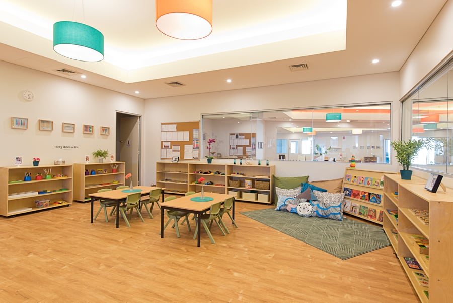 Unlike the traditional primary school classroom, where desks are usually oriented toward a white-board or learning area, there is no focus point in the Montessori classroom. Instead, the entire classroom acts as an engaging learning space, where children can work individually or collaboratively on educational projects.