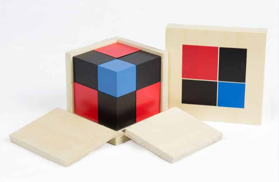 This material is a precursor for more complex mathematical concepts including fractions and algebra. If your child continues to learn using the Montessori philosophy, the Binomial Cube is used in the primary years to understand and experience algebraic concepts.