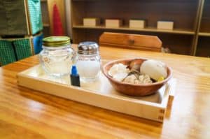 1. Lay out all the materials on a work tray from left to right (preferably in the order the child will use them)